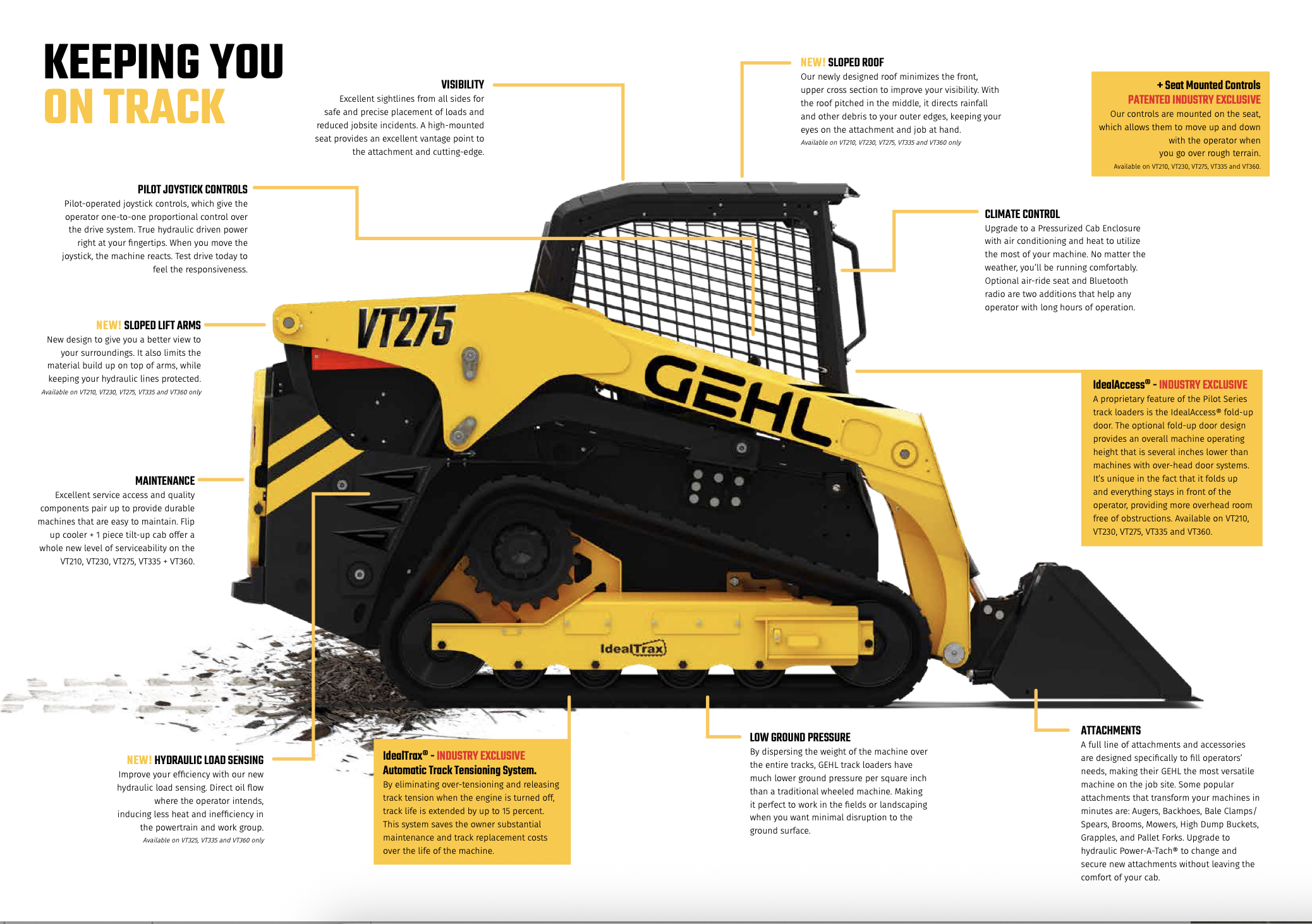 Tooteleht masina tehniliste andmetega: GEHL VT275