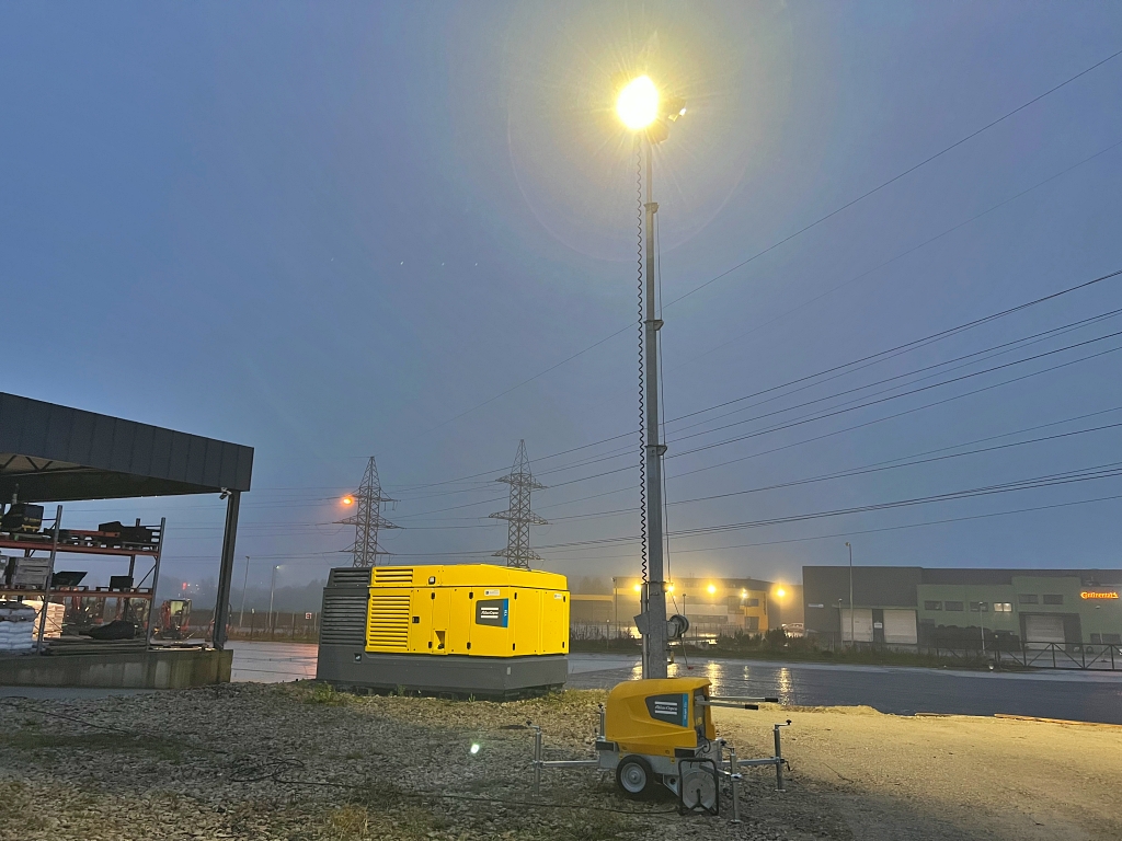 Valgustatav ala 4000 m2 (12 lux), teleskoopmasti kõrgus 7m, käsivints